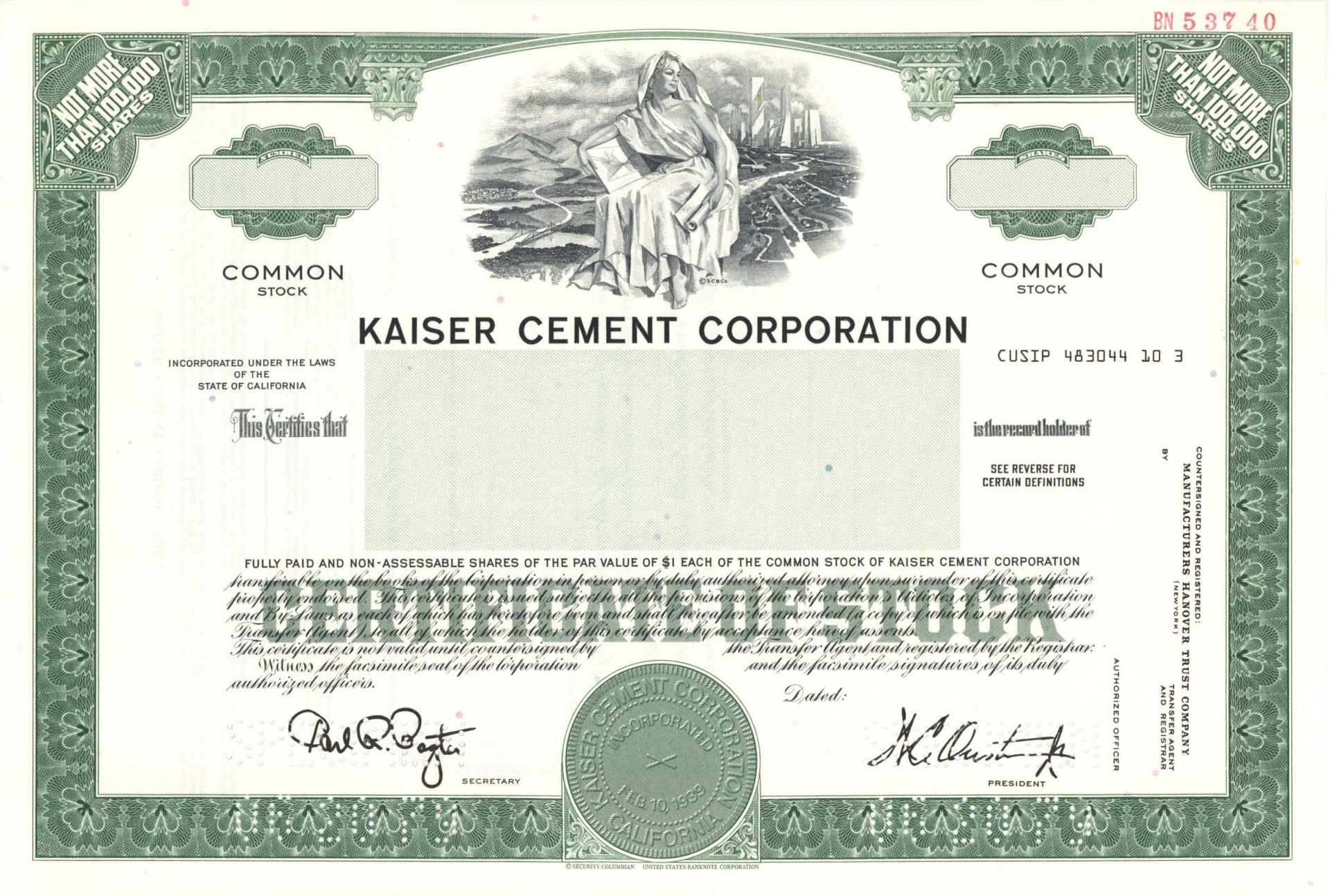 Kaiser Cement Corp. - Specimen Stock Certificate