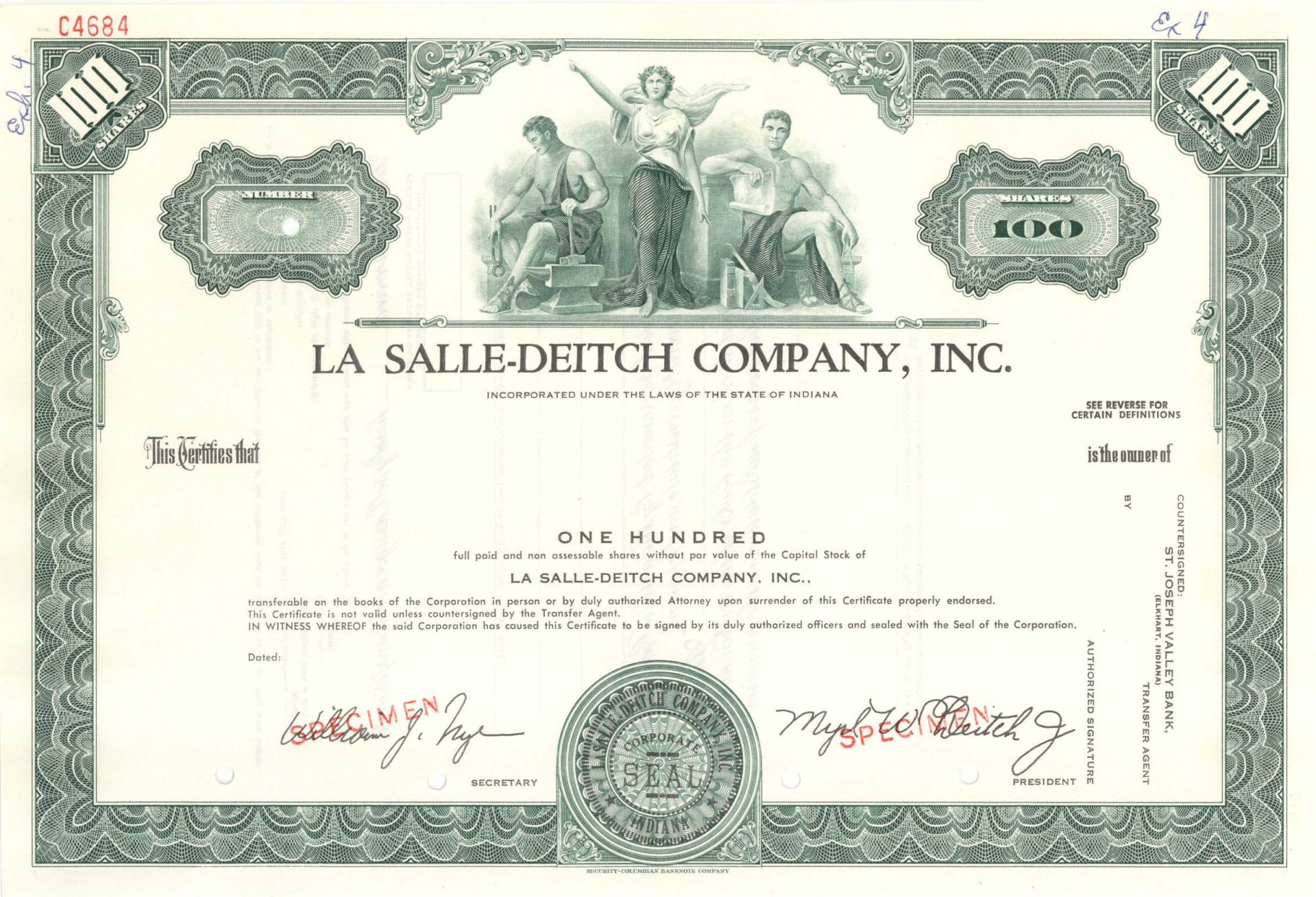 La Salle-Deitch Company, Inc. - Specimen Stock Certificate