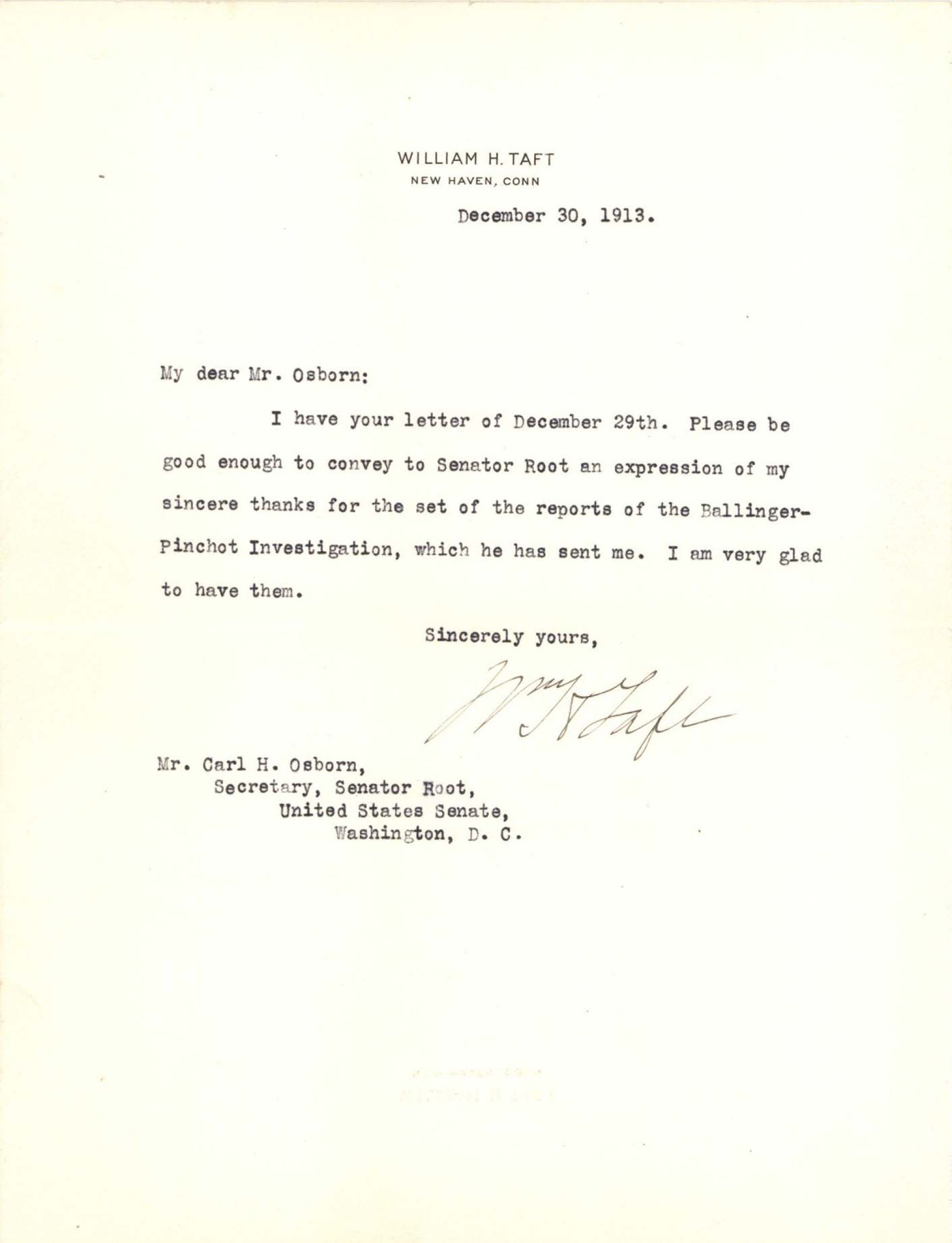 Typed letter signed by Wm. H. Taft. Also included is PASS-CO authentication.