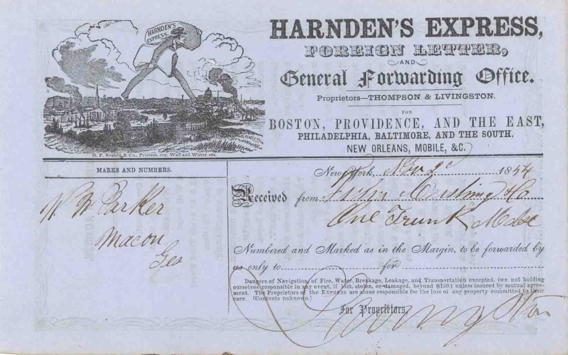 Receipt printed on blue paper. Livingston signed of American Express Fame.