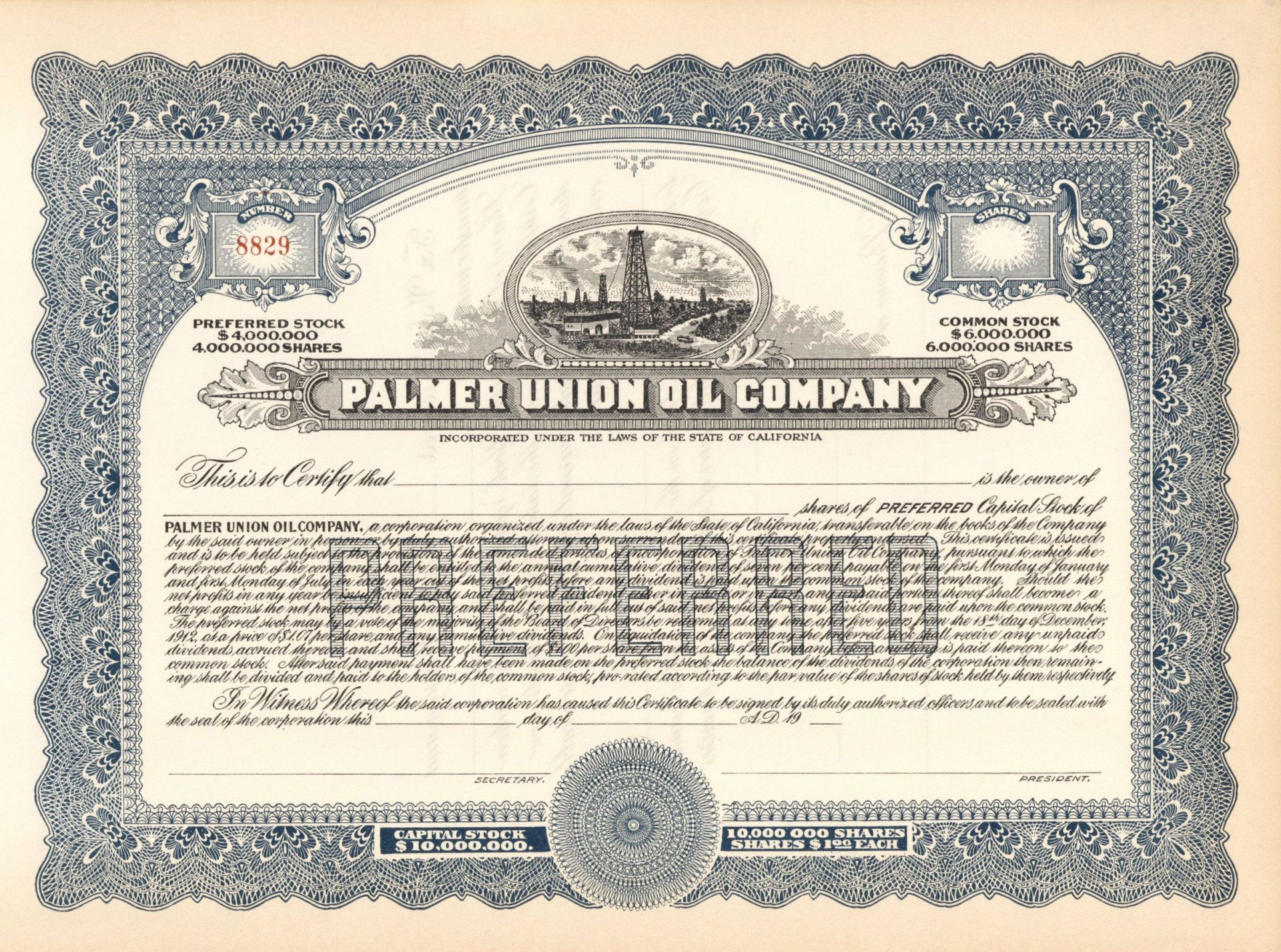 Palmer Union Oil Co. - Unissued Stock Certificate