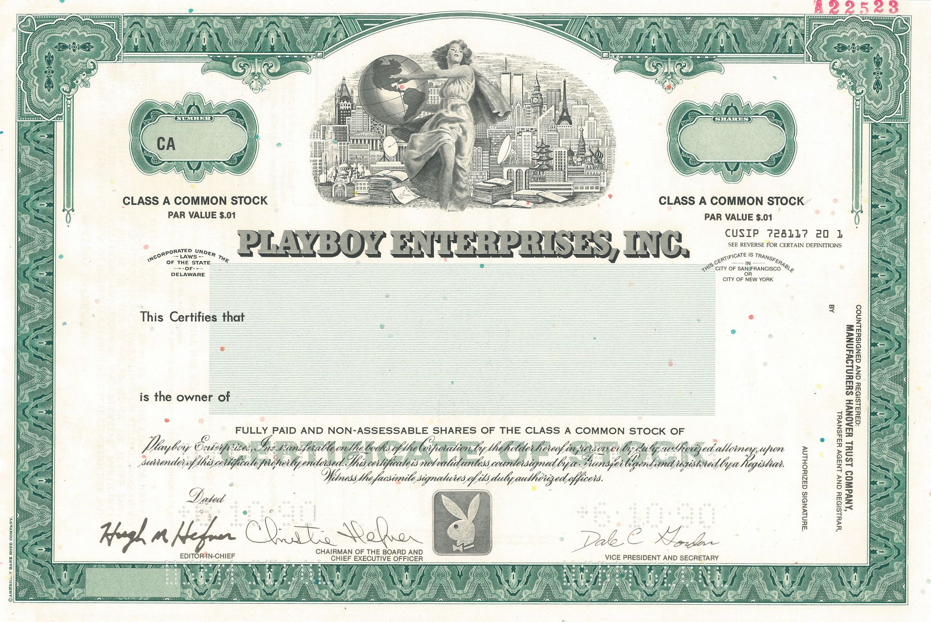 Playboy Enterprises, Inc. - 1990 dated Specimen Stock Certificate