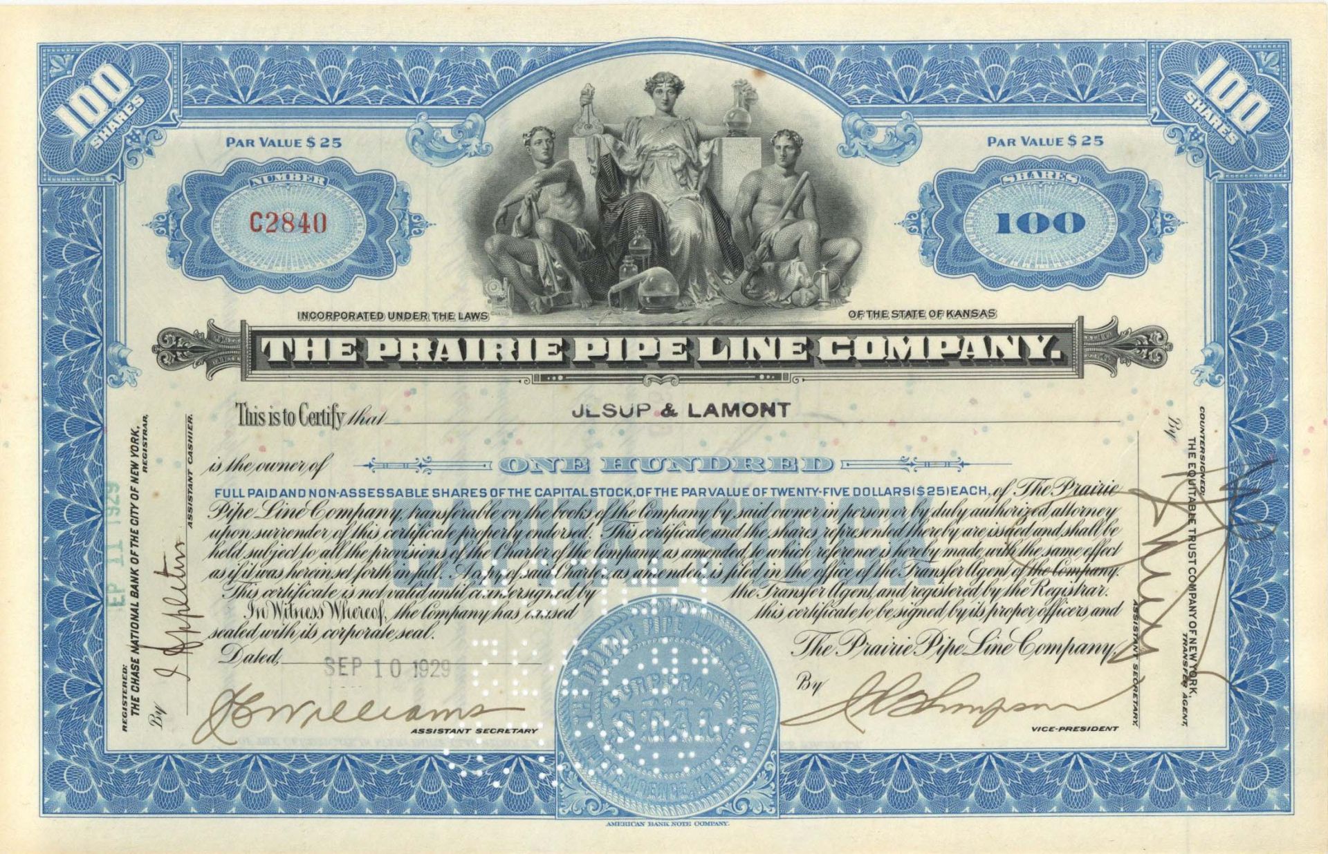 Prairie Pipe Line Co. - 1929 dated Stock Certificate