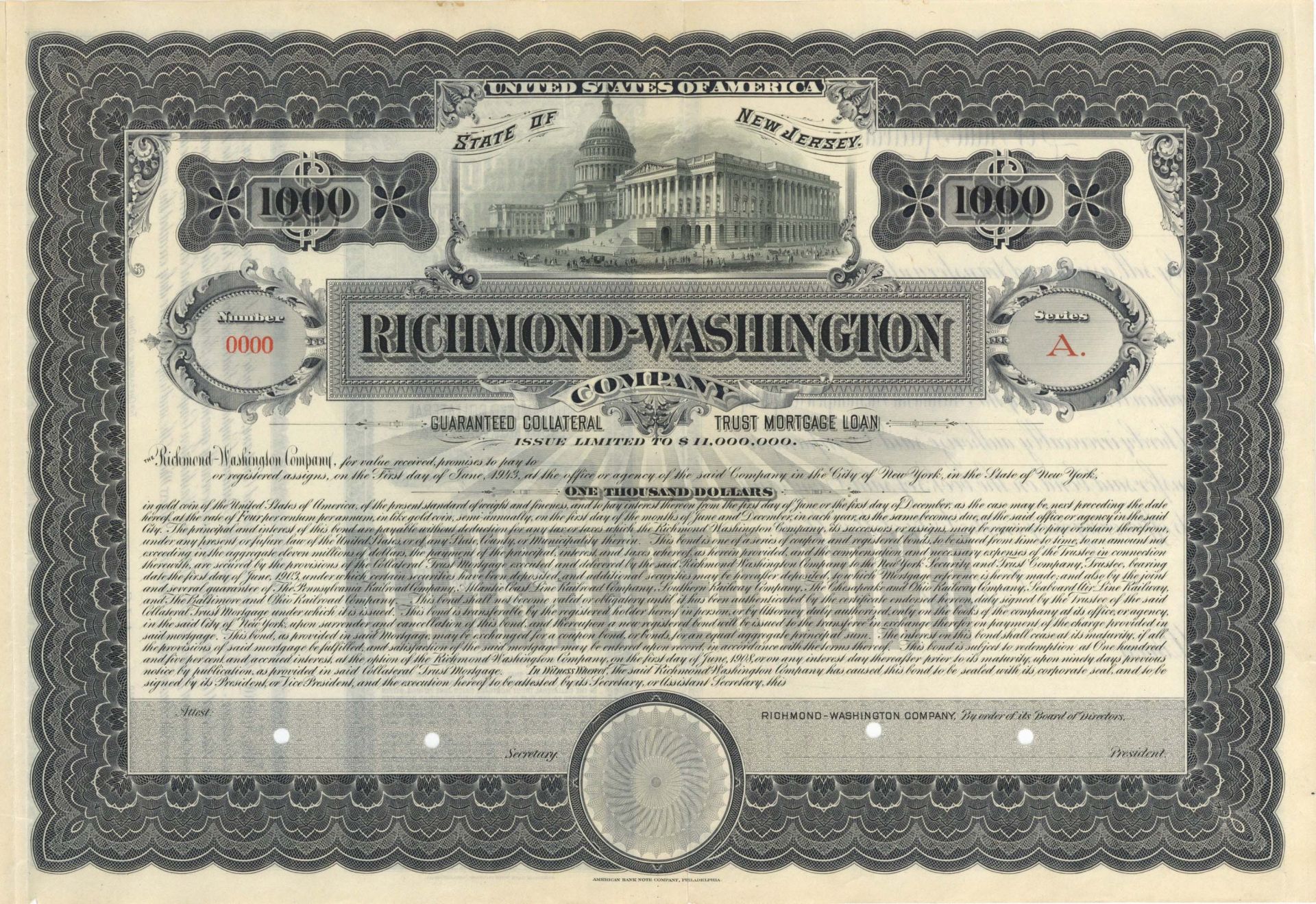 Richmond-Washington Co. - $1,000 Specimen Bond