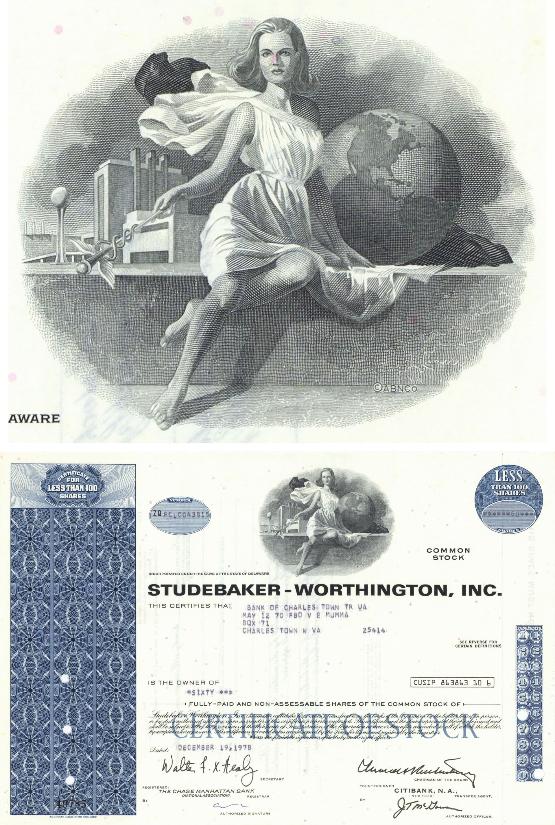Studebaker-Worthington, Inc. - 1970's dated Automotive Stock Certificate