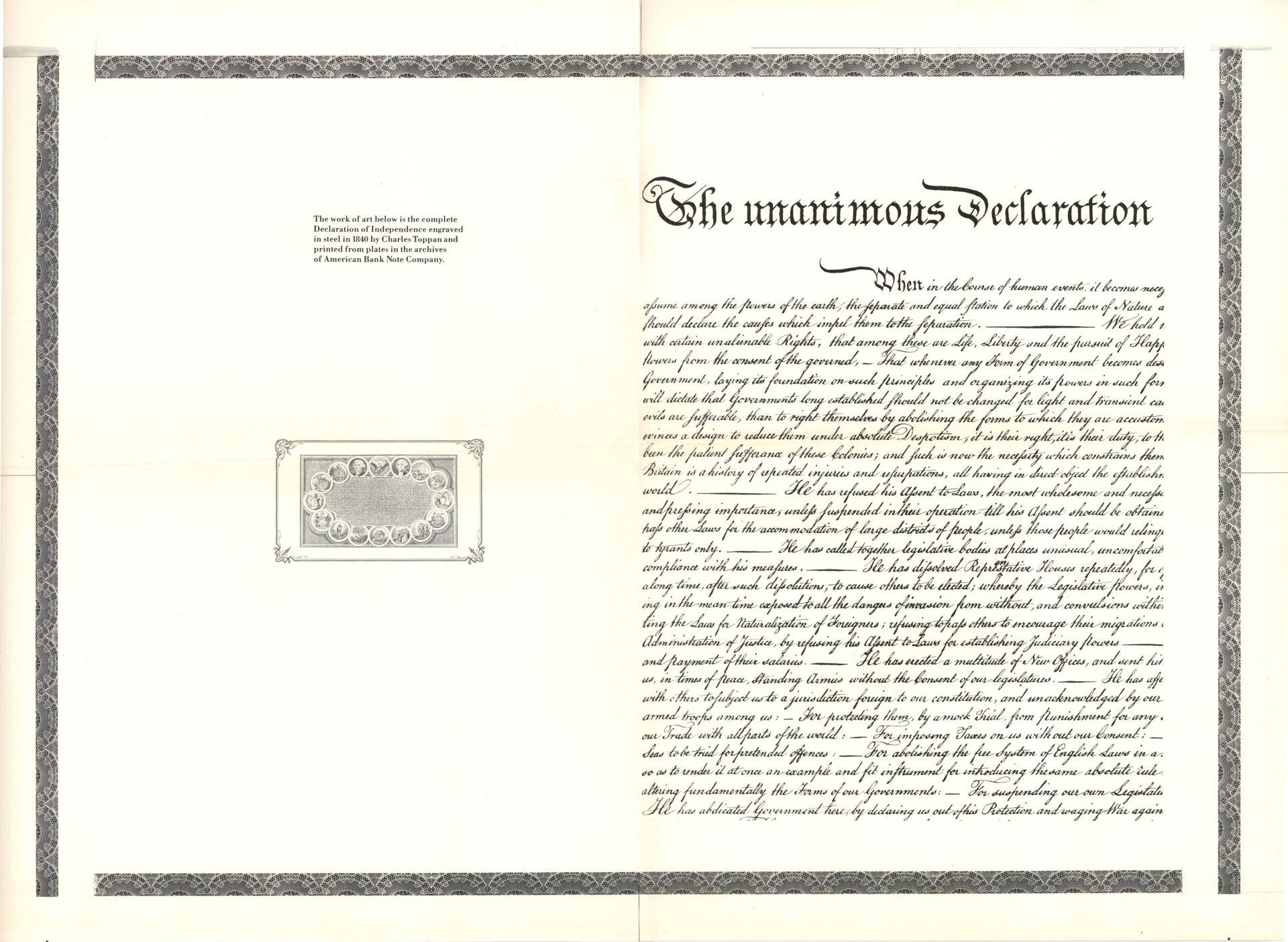 Unanimous Declaration Proof printed by American Bank Note Company