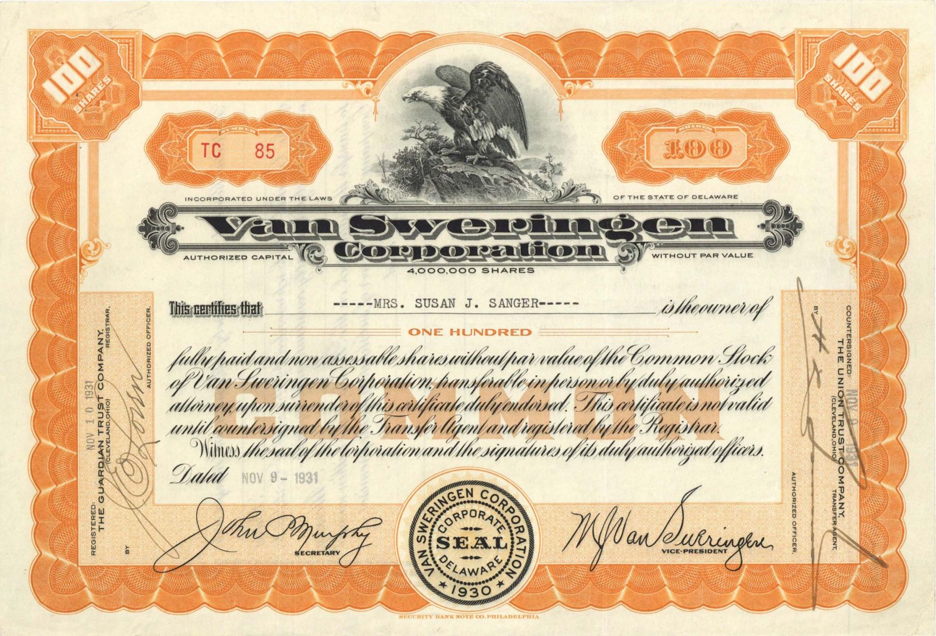 Van Sweringen Corp. - 1931 dated Stock Certificate