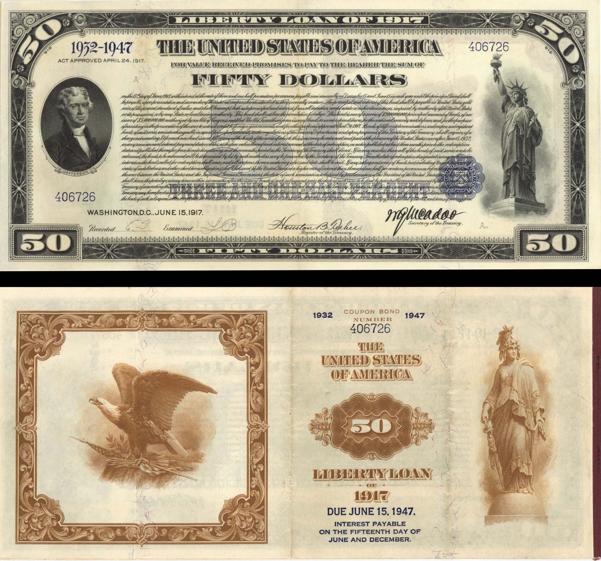 $50 Liberty Loan of 1917 Bond - 60 Coupons Still Attached